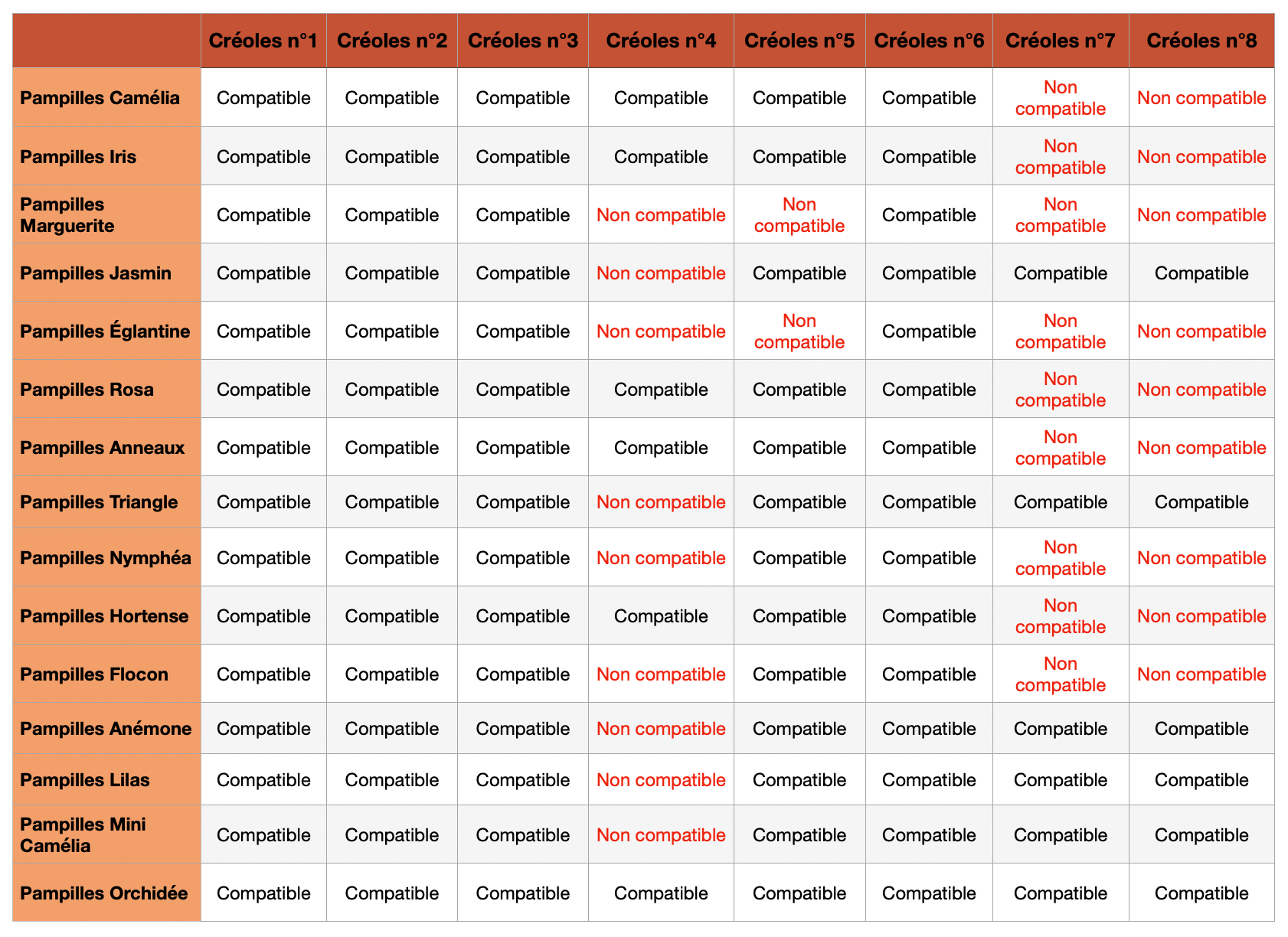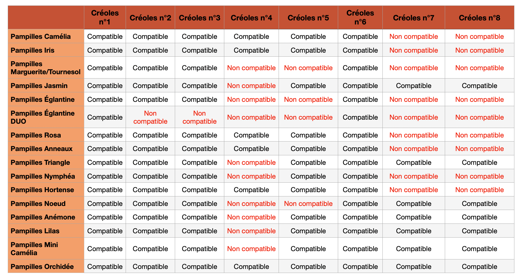 Tableau des compatibilités créoles-pampilles
